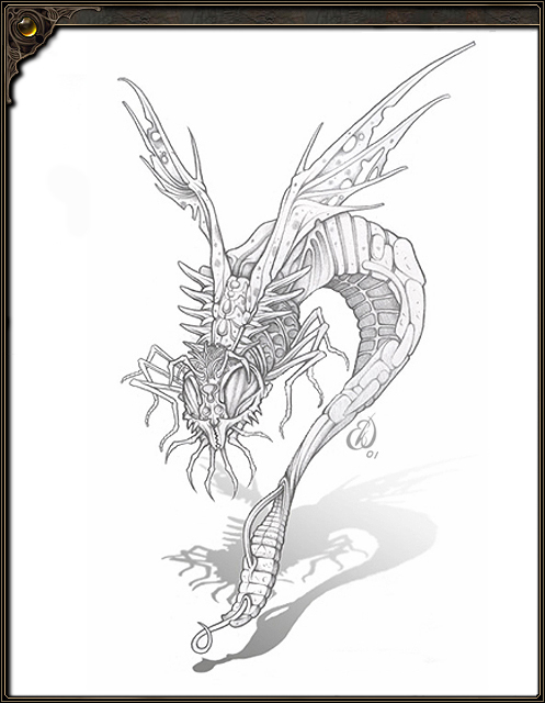 | NAME: Scalkler Fly MEDIUM: Pencil and gum eraser. ABOUT: Creature concept sketch, for online video game PLAY.NET. |