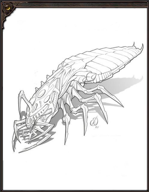 | NAME: Scull Beetle MEDIUM: Pencil and gum eraser. ABOUT: Creature concept sketch, for online video game PLAY.NET. |