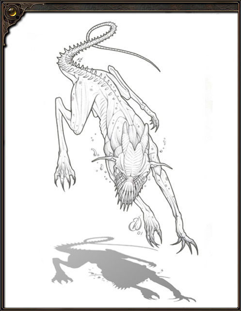 | NAME: Scout Hound MEDIUM: Pencil and gum eraser. ABOUT: Creature concept sketch, for online video game PLAY.NET. |